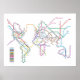 A map of the world in the style of a metro / tube / underground system, with major cities from across all the continents as stations.