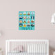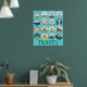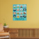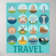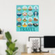 This poster features sixteen circular vector graphics of world monuments. The teal background, and the text, can be customized as desired.