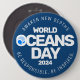 Make June 8th (World Oceans Day) a memorable event with this commemorative button, which features the 2024 theme "Awaken New Depths" encircling a stylized aquatic globe in the letter "O" of "Oceans".