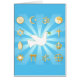 Gold symbols of international religions surround the World of Peace with a Dove on a sky blue ray background. Customize with your text. The mandala highlights twelve religious icons that express the global diversity of spiritual beliefs and harmony: Clockwise: Christianity, Hindu, Taoism, Baha’i, Buddhism, Jain, Shinto, Confucianism, Native Spirituality Medicine Wheel, Judaism, Sikh, Islam. *****Note gold color is not metallic.*****