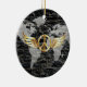 Lightweight, smooth, pure white ornament with nice sheen. Perfect size to be seen from across the room ... and to attract closer inspection! Price was great for ordering enough for the whole family! Clear, bold black design just as requested. Matches the order exactly. Just so nice!