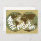 World Postcard Day is October 1. This is a special day to promote and celebrate the sending and collecting of postcards. This design features a vintage style globe map of two hemispheres in soft earth colors with a typographic design of the words in white.