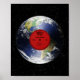 A photo of the Earth depicted as a vinyl record. Seven tracks are etched on the surface, one for each continent. A red label in the center has text saying "Milky Way" "World Record" and "Eastern and Western Hemispheres property of the Earth. Made in the Solar System". Also includes a tracklist with the names of the 7 continents.