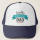 “World’s greatest Dad.” Let Dad know what you really think of him. Cool, modern black, red, and white typography and an aqua blue banner overlay a white background. Customize with the year he became a Dad for the perfect, personalized keepsake trucker hat that he’ll wear over and over. Makes a great Dad gift for Father’s Day or his birthday!