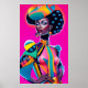 Fun bright artwork that really captures the mood I’m going for! Pop art with cyberpunk energy. A little sweet but also spicy. This art is the perfect size and vibe for our art gallery wall. The printing looks great, high quality with vibrant colors! I went with the semi-gloss finish, which adds a little extra shine and thickness to the print making it excellent for high-traffic areas like the staircase wall.