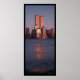 This is a film photograph taken of Twin Towers in New York City skyline in 2000. One of my favorite images, the way the light reflects off the buildings into the water.