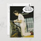 Design features World War II era woman factory worker. The perfect image of "Rosie the Riveter" Woman is wearing coveralls and has her hair up in her hair net. Shows woman thinking to herself "Should I tell them my name isn't Rosie?"