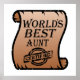 A funny gift for your cool Aunt. A vector illustration of a old roll of paper which has been made into a sign that reads WORLD'S BEST AUNT, CERTIFIED. A certificate design to show your Auntie that she is the best Aunt ever.