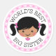 Worlds best big sister cartoon girl black hair classic round sticker