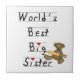 World's Best Big Sister keepsake boxes, tiles, ornaments, gel mousepads, throw pillows, notebooks, stickers, and more featuring a teddy bear with a big yellow pencil and line drawn kid style text that reads "World's Best Big Sister!". You can customize it further by adding a name on the spot!