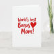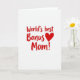 This greeting card features the message “World’s best Bonus Mom!” in rounded, flowing red lettering on a plain white background. The words are stacked in three lines, with “Bonus” placed in the middle so it stands out. A small red heart sits near the wording like a sweet little accent, adding a clear note of love ❤️. There are no characters or extra objects, just the text and heart, which keeps the focus on what you want to say. The red-on-white contrast makes the message easy to read at a glance and feels warm and direct. It’s a meaningful card to give because it thanks a bonus mom for being there in a way that feels simple, honest, and caring 🥰. Share it to help pass along Valentine’s Day sentiments.