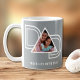 This World's Best Dad Photo Mug is decorated with the word DAD in white typography on a gray background.