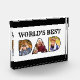 This photo collage photo block for Fathers Day features a three photo collage quote reading "World's Best Dad". Fill in the lettering with your favorite family photos for a unique gift. Designed by ©Susan Coffey.