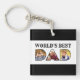 This photo collage key chain for Fathers Day features a three photo collage quote reading "World's Best Dad". Fill in the lettering with your favorite family photos for a unique gift. Designed by ©Susan Coffey.