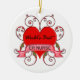 Lightweight, smooth, pure white ornament with nice sheen. Perfect size to be seen from across the room ... and to attract closer inspection! Price was great for ordering enough for the whole family! Clear, bold black design just as requested. Matches the order exactly. Just so nice!