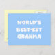 White text World's Best-est Granma T-shirts, mugs, hoodies, cards, tote bags, magnets, keepsakes, and other world's best granma gear. Great gifts for great grandparents!