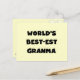 Black text and white text World's Best-est Granma T-shirts, mugs, hoodies, cards, tote bags, magnets, keepsakes, and other world's best granma gear. Great gifts for great grandparents!