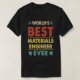 My 11 yo wore adult XL (5’7” 165#). The 8yo is small framed. She wore adult small and tied it in the back. Grandma wore adult large with long sleeve shirt underneath. Tall girl adult medium. Dark haired male adult large. Good quality dark Heather gray, Gildan brand shirt. -it was next up from basic choice and cost about $20 per shirt. Not too thick or thin. Washed and dried well, no major shrinkage. Not see-through. Can wear a bra under it fine. Screen print is just as shown and well done, front and back.