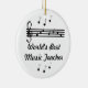 A great design for a music teacher. A white background with musical notes and a treble cleff in black. The message can be changed or left as is.