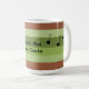 Another great mug for a great music teacher! Stripes in green and brown and musical notes in black.