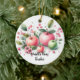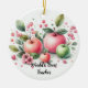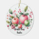 Delight a teacher with this great ornament featuring a grouping of fresh looking apples in soft colors with a background of leaves and berries in a watercolor style art.
