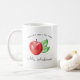 A sweet gift for your favorite teacher at year end, back to school, teacher appreciation day or the holidays, mug features a red watercolor apple illustration with "world's best teacher" and teacher's name in black lettering.