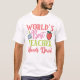 This design features a white t-shirt with the text "WORLD'S Best TEACHER Hands Down" in a stylized font with multiple colors. The design includes graphics of a book and an apple.