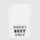 A unique golf towel gift for a golfer uncle featuring "World's Best Uncle" showcased in modern black lettering.