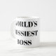 Mug with the text "WORLD'S BOSSIEST BOSS" on the side of it, written in all caps.