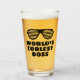World's Coolest Boss funny beer glass gift. Cool Birthday and Christmas gift ideas for men. Also great for best dad, husband, boyfriend, father, grandpa, friend, co worker, brother, coach, teacher etc. Fun party sunglasses design with bold text. Drinking gifts for corporate colleague, business friends, clients and others.