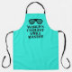 World's Coolest Grill Master fun BBQ apron for men. Custom kitchen and cooking aprons for guys. Customizable background and strap colors. Cool Birthday gift ideas for best dad, trophy husband, greatest father, uncle, grandpa, brother, friend, boyfriend, family, co worker, boss, grill master, chef, cook, daddy, coach etc. Neon turquoise blue and black design with big party sunglasses. Available in short and long sizes. Large elegant typography template. Add your own personalized name optionally. Also great as Father's Day present! Summer barbecue designs for him and her.