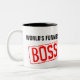 World's Funniest Boss Coffee Mug. Fun appreciation gift idea for the office on Boss Day. Personalizable business text and colors. Red Rubber stamp design.