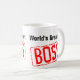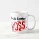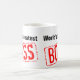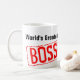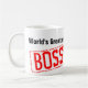 World's Greatest Boss coffee mug. Cute gift idea for boss day. Personalizable text and colors. Red Rubber stamp design.