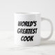 World's Greatest Cook jumbo mug gift for chef. Custom giant coffee cup for friends, boss, restaurant owner, husband, boyfriend, dad, father, uncle, grandpa etc. Cute enormous size drinkware design with cute cartoon and funny quote. Big XL oversized mugs for home and office. Also nice as Birthday gift for him.