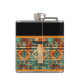 Striking Native American, Aztec style design flask in shades of blue, orange and tan, with black accents. Typography at the top says World's Greatest Dad in white and orange against a black background.