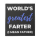 World's Greatest Farter I Mean Father design. This is a short funny quote which is great as an appreciation gift for Fathers or Father figures. Also suitable as a general father gift for Father's Day, Birthday or Christmas.
