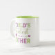 World’s greatest mother coffe mug. Beautiful mix of green and pink/purple tones. This design position is situated on the outside, for right handers. Left hander version is available in the Left Handed Mug Collection at Heva Weva.