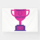 This banner features the words "World's Greatest Mother" displaying a yearbook bold print font with purple letters plus a winners wreath with number 1 in the center over a pink colored flat style cup trophy on a purple base in this Mother's Day theme. This banner has single side printing outdoor safe measures 4"x6" made with an elegant matte finish and is both fade and tear resistant for Indoors or outdoor use great for advertise anything, from birthdays to graduation, weddings to anniversaries. Hemmed and thermally welded edges for neat finish outdoor banners can be bought with metal grommets.