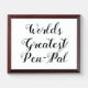 World's Greatest Pen Pal Award Plaque