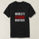 World's okayest brother. World's in uppercase white and black sans font. Okayest in black uppercase font with bright red colored surround. Brother in white uppercase font can be customized with another word or description.