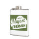 Well made flask, a little better than I had expected. Flask came in clear plastic box which gave it a nice presentation when I took it out of the zazzle packaging. Image is not printed on flask but on sticker. Don't know how this will hold up I haven't used it yet. This would make a Great gift! I plan to purchase more for friends! Cheers. I thought a little brighter than computer. Very crisp, writing wasn't