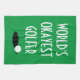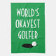 Worlds Okayest Golfer kitchen towel for golf lover. Humorous gift idea for golfing enthusiast, dad, mom, husband, wife, uncle, brother, instructor, coach, friend, co worker, boss, caddie etc . Fun Birthday gift ideas for him or her. Green or custom color. Golf ball and putting hole drawing.
