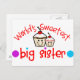 Cute big sister t-shirts, tote bags, buttons, stickers, key chains, caps, sweatshirts, greeting cards, and more that feature 2 cute smiling cupcakes topped with a cherry, with the saying World's Sweetest Big Sister. Big sisters would love getting these customized gifts.