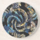 I'm not sure how much moisture these will soak up, haven't had a chance to try them out, but they look good and I like the cork backing. The printing is fine ~ and really looks cool with an artisan's hand made "Hurricane Martini" glass sitting on top of my painting (on the coaster) in my studio.