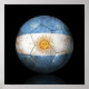 This unique design features the flag of Argentina painted onto a football or soccer ball. Rough textures and scratches gives the ball an aged and well used look. A reflection appears just underneath the ball which helps to create a three dimensional effect. This beautiful Argentinian themed sports design is a perfect way to show of your National patriotism.
