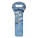 The wine tote is great for all of the social events and gatherings at neighbors in our community. The material is very durable and easy to carry a chilled bottle of wine or a few stacked aluminum cans. Be sure to push the bottle or cans firmly to the bottom so the carrier isn't tippy when set on a table. The blue background is a lovely rich blue with a sharp white logo - the printing looks great! I didn't realize the blue background wouldn't go edge to edge (there is a white "seam area" on each side) but our logo colors are blue and white so it looks like trim.
