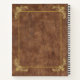 Worn and scuffed brown leather, with an antique gold frame around the edges, makes an elegant notebook that's perfect for use at home, in the office, or at school.
