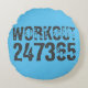 Worn out and scratched text Workout 247365 blue Round Pillow