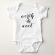 Your little baby will look so cute wearing this! This fun design features bold text that reads, “worth the wait”, printed in black. Design is appropriate for either a boy or a girl, and make a great baby shower gift.