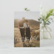 A one photo, full bleed design featuring a modern, brush calligraphy script announcement about a postponed wedding.